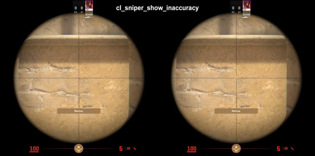 - Шинэ боломж: прицелийн дотор буудлагын алдаа (spread) харагдах болсон.