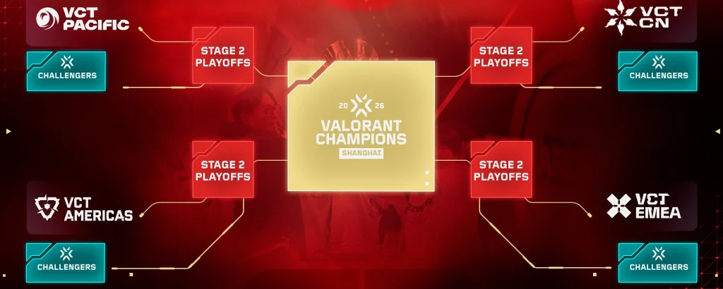 2026 оны улирлаас эхлэн Challengers лигийн тус бүрийн бүс нутагт (Americas, EMEA, China, Pacific) шилдэг 4 баг Stage 2 Playoff шатанд оролцоно. Энд тэд Champions 2026 руу гарах эрхийн төлөө өрсөлдөнө.
