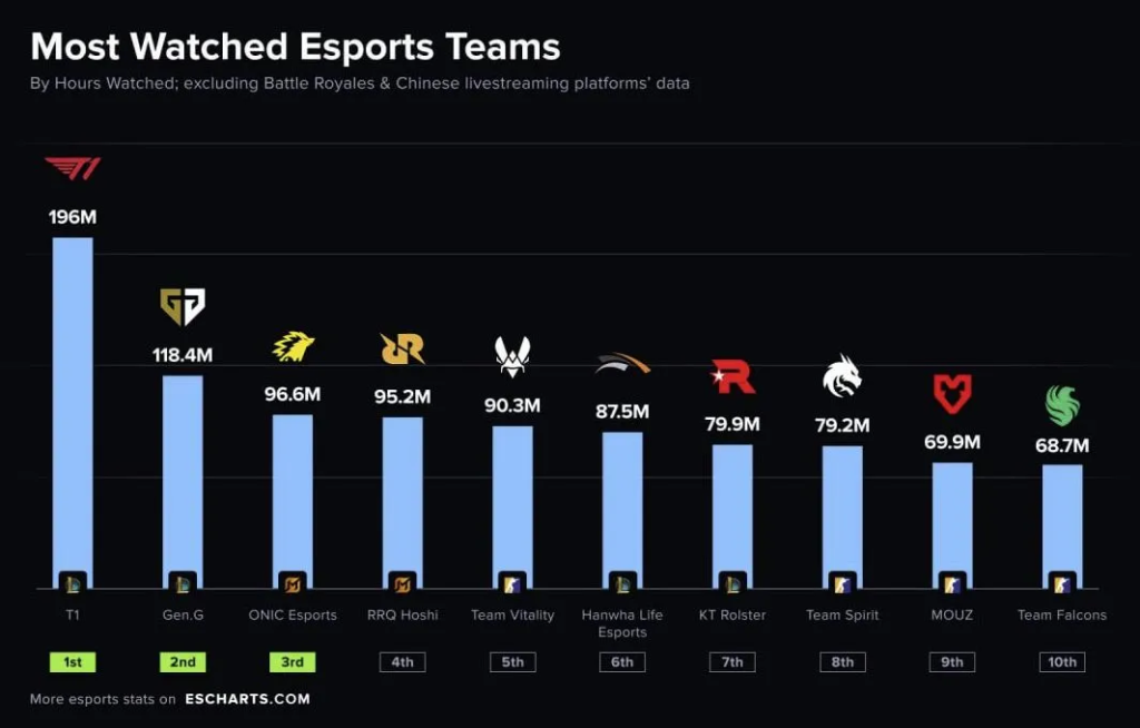 Цахим спортын статистикийн Esports Charts портал 2025 оны хамгийн олон үзэгчтэй багуудын мэдээллийг нийтэллээ.