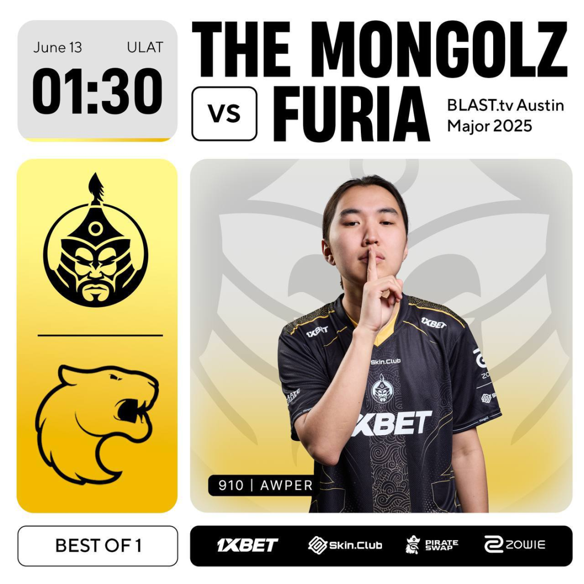 2025 оны хамгийн өндөр зэрэглэлийн тэмцээнүүдийн нэг болох BLAST.tv Austin Major 2025-ийн 3-р шатны эхний тоглолтод The MongolZ баг Бразилын FURIA багтай хүч сорин тоглож, 11:13-ийн харьцаатай ялагдал хүлээлээ.